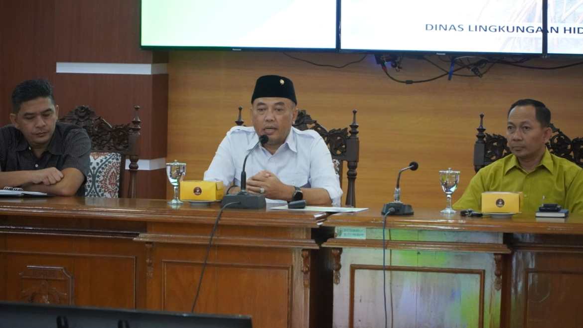 RAPAT – Pj Bupati Jepara Edy Supriyanta pimpin rapat kebersihan lingkungan pasar bersama 18 kepala pasar yang ada di Jepara. (Foto: Diskominfo/Gistara)