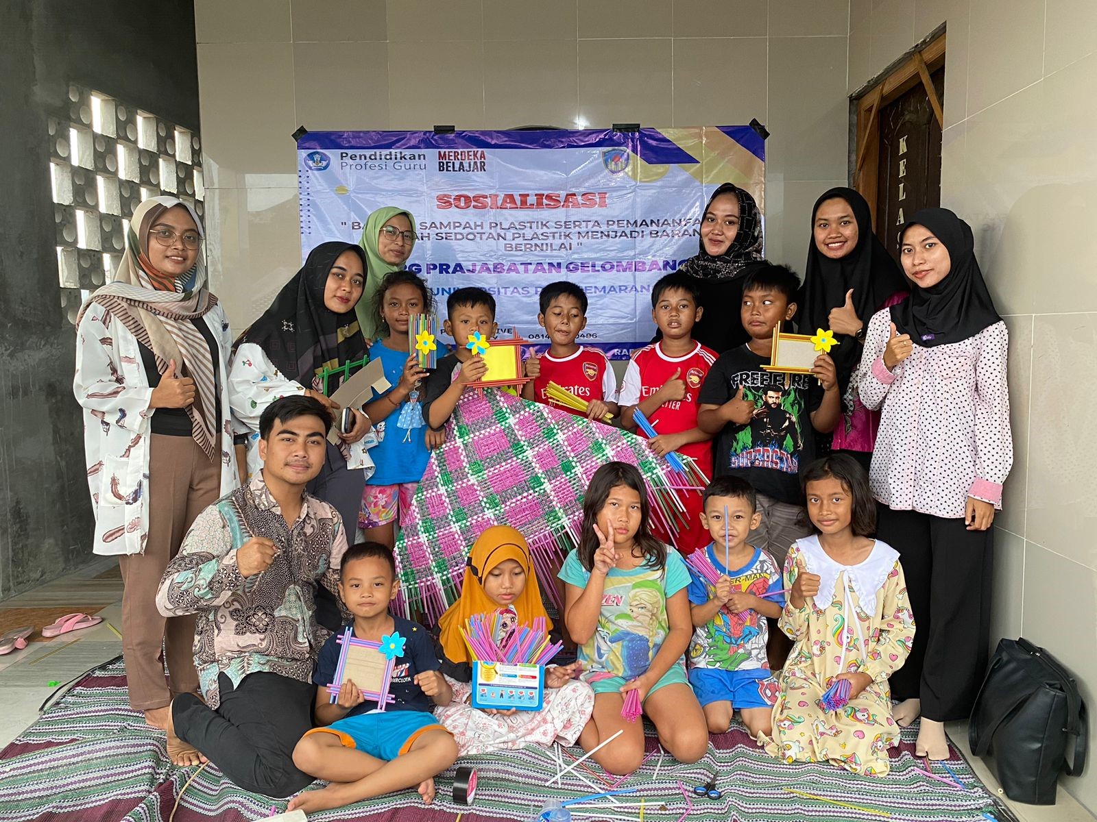 Sebagai upaya pengurangan dan pemanfaatan limbah plastik Mahasiswa Pendidikan Profesi Guru (PPG) Prajabatan Gelombag 1 (Kelas F kelompok 5) Universitas PGRI Semarang menggandeng Ibu PKK dan anak-anak di RT 6 RW 2 Kelurahan Mlatiharjo, Semarang Timur guna meningkatkan kreativitas pengolahan limbah sedotan plastik Kamis, (2/3/2023).