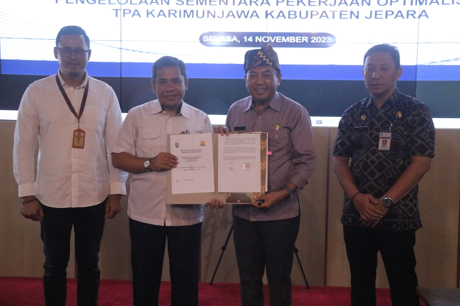 Pengelolaan sementara pekerjaan optimalisasi TPA Karimunjawa ditandai MOU (Memorandum of Understanding) Kementerian PUPR yang diwakili Kepala Balai Prasarana Permukiman Wilayah (BPPW) Jawa Tengah Kuswara dan Penjabat Bupati Jepara H. Edy Supriyanta, pada Selasa 14 November 2023 di kantor Setda Jepara. Hadir mendampingi Kepala DPUPR Ary Bachtiar dan Plt. Kepala Dinas Lingkungan Hidup (DLH) Edy Marwoto.