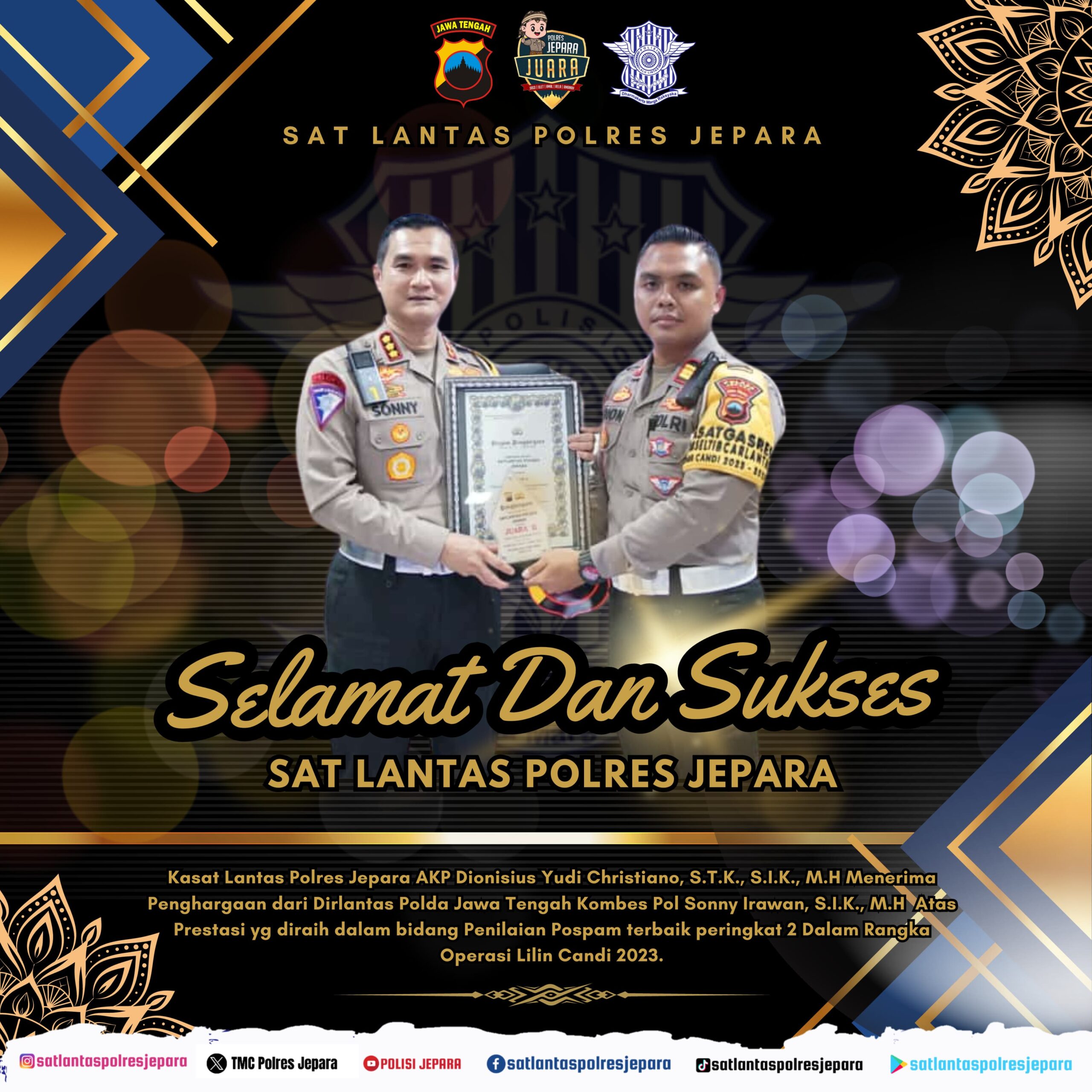 Kasat Lantas Polres Jepara AKP Dionisius Yudi Christiano mengucapkan terima kasih atas penghargaan terbaik dalam rangka menghadapi perayaan Natal dan Tahun Baru 2023-2024, Polres Jepara mendirikan Pos Pelayanan (Pos Yan) dan Pos Pengamanan (Pos Pam) yang ditempatkan di daerah rawan kecelakaan dan tindak pidana.