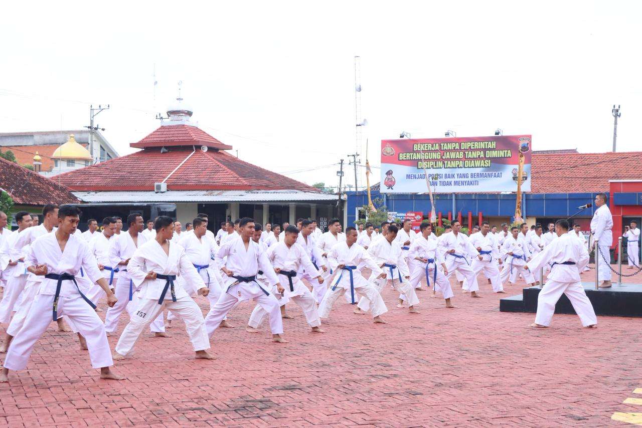 JEPARA | GISTARA.COM – Kepolisian Resor (Polres) Jepara, Polda Jawa Tengah, menggelar kegiatan Latihan Beladiri Polri bertempat di halaman Mapolres setempat, pada Kamis (11/9/2025) sore.