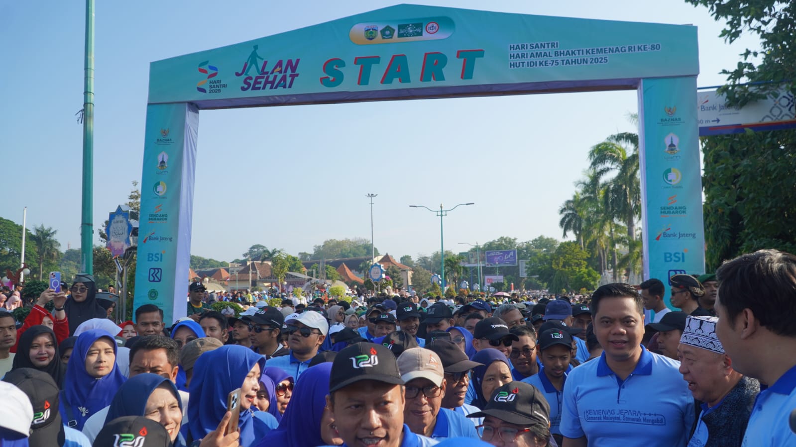 JEPARA | GISTARA. COM – Puluhan ribu peserta tumpah ruah di Alun-alun I Jepara dalam kegiatan Jalan Sehat Hari Santri dan Pencanangan Hari Amal Bakti (HAB) Kementerian Agama RI ke-80, Sabtu (11/10/2025).