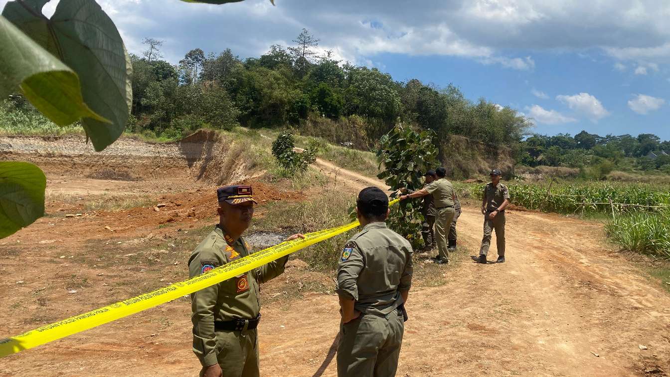 Atas dasar itu, tim kemudian memasang Satpol PP line sebagai tanda penyegelan area tambang.