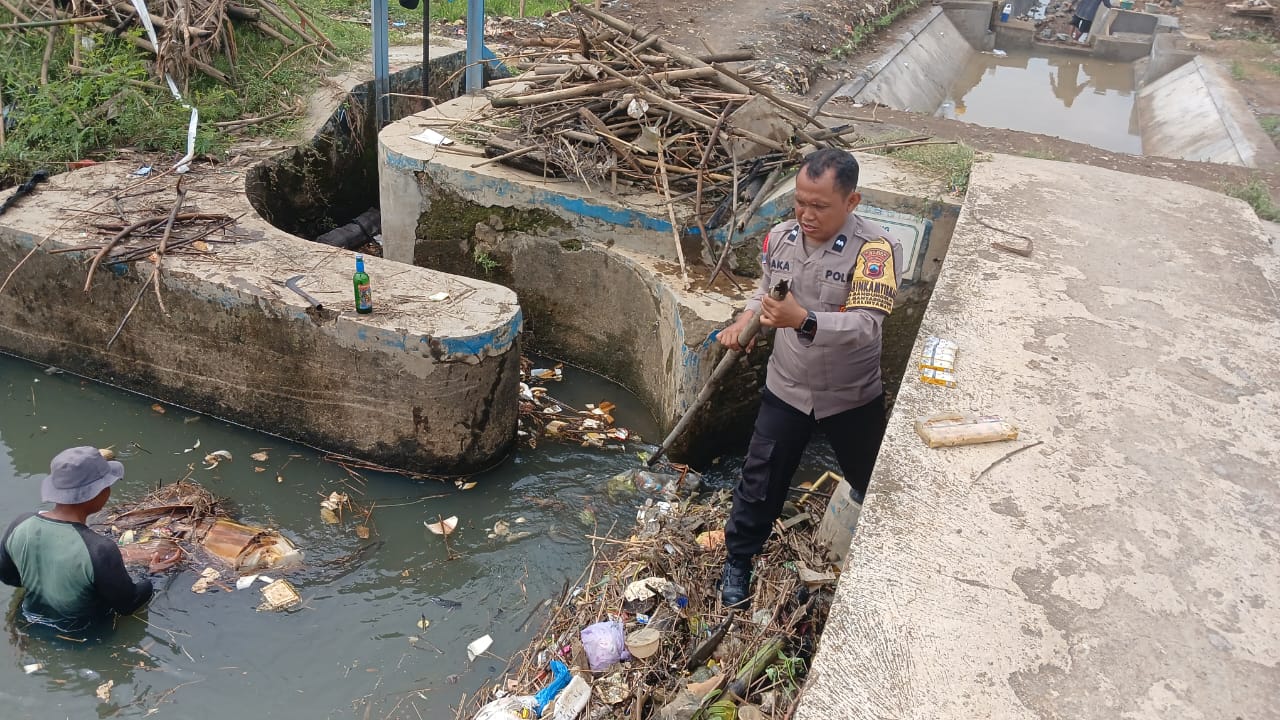 Bhabinkamtibmas ikut bersihkan sampah di Sungai Kaweden