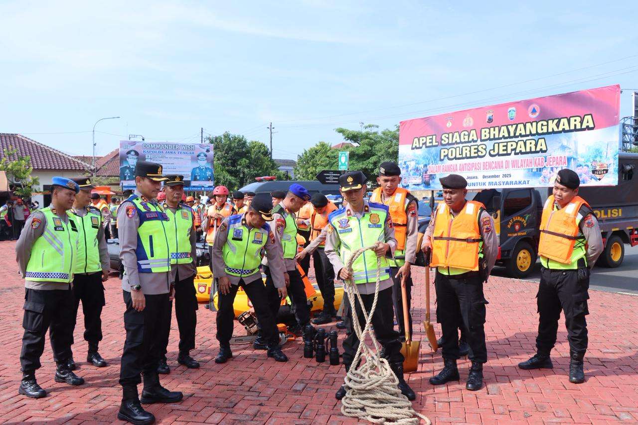 JEPARA | GISTARA.COM – Menghadapi cuaca ekstrem dan potensi bencana yang dapat terjadi sewaktu-waktu, Kepolisian Resor (Polres) Jepara, Polda Jawa Tengah, menggelar Apel Pasukan Siaga Bhayangkara di halaman Mapolres setempat, pada Selasa (2/12/2025).