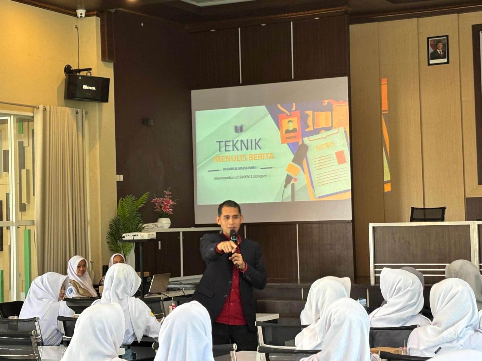 “Dalam menulis berita pada bagian body, gunakan kombinasi kalimat langsung dan tidak langsung agar informasi lebih kaya dan tetap jelas,” ucap Khoirul saat menyampaikan materi Jurnalistik dihadapan pada siswa.