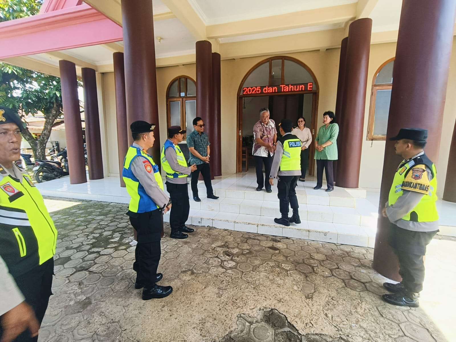 Salah satunya yang dilakukan oleh Kapolres Jepara AKBP Erick Budi Santoso yang diwakili Kabag Ops Kompol Sutono didampingi sejumlah pejabat utama melakukan kunjungan dan pengecekan langsung ke sejumlah gereja yang berada di Kabupaten Jepara, seperti Gereja Injil di Tanah Jawa (GITJ) Bondo, Kecamatan Bangsri, pada Selasa (16/12/2025).
