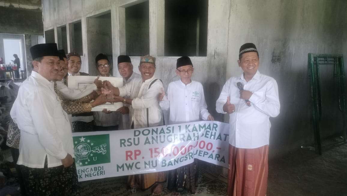 JEPARA | GISTARA.COM – Semangat ta’awun (tolong-menolong) ditunjukkan secara nyata oleh warga Nahdlatul Ulama (NU) di Kecamatan Bangsri. Melalui pengumpulan iuran kolektif, Majelis Wakil Cabang Nahdlatul Ulama (MWC NU) Bangsri berhasil menyerahkan donasi sebesar Rp150.000.000,- untuk pembangunan satu kamar di Rumah Sakit Umum Anugerah Sehat (RSU ASEH) Jepara pada Sabtu (13/12/2025).