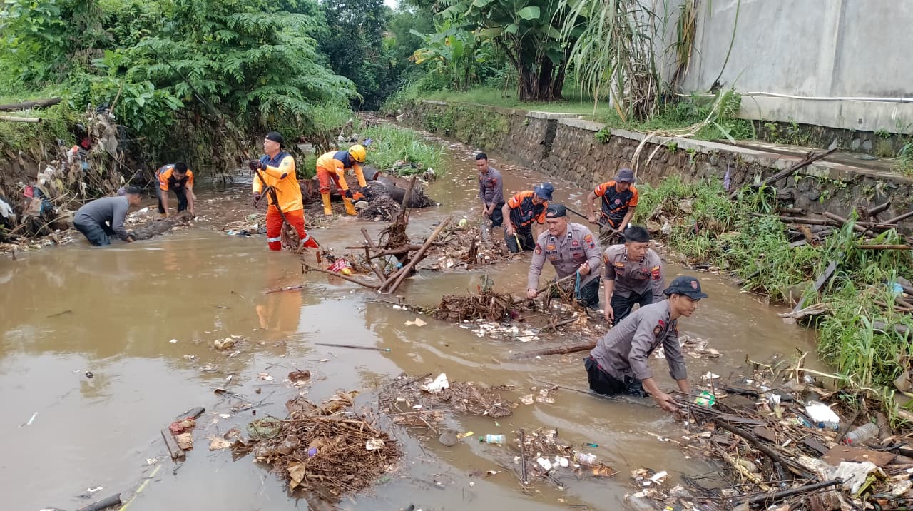 Polisi bersama warga bersihkan sungai