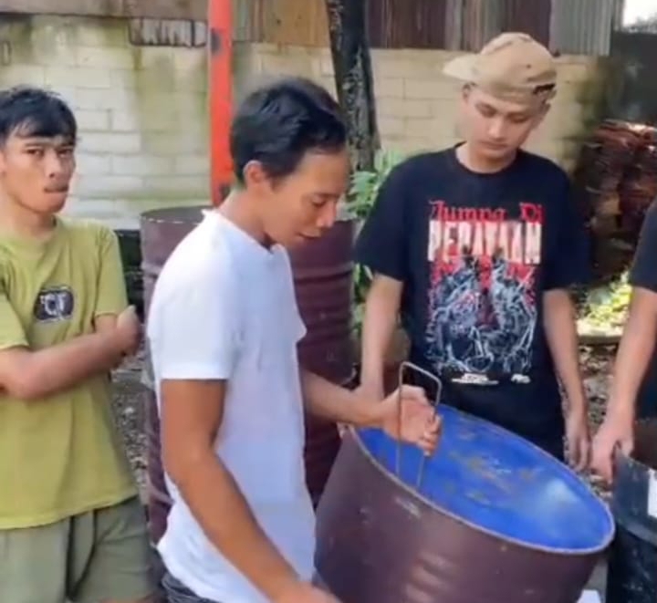 Mahasiswa KKN membuat bak sampah dari drum bekas