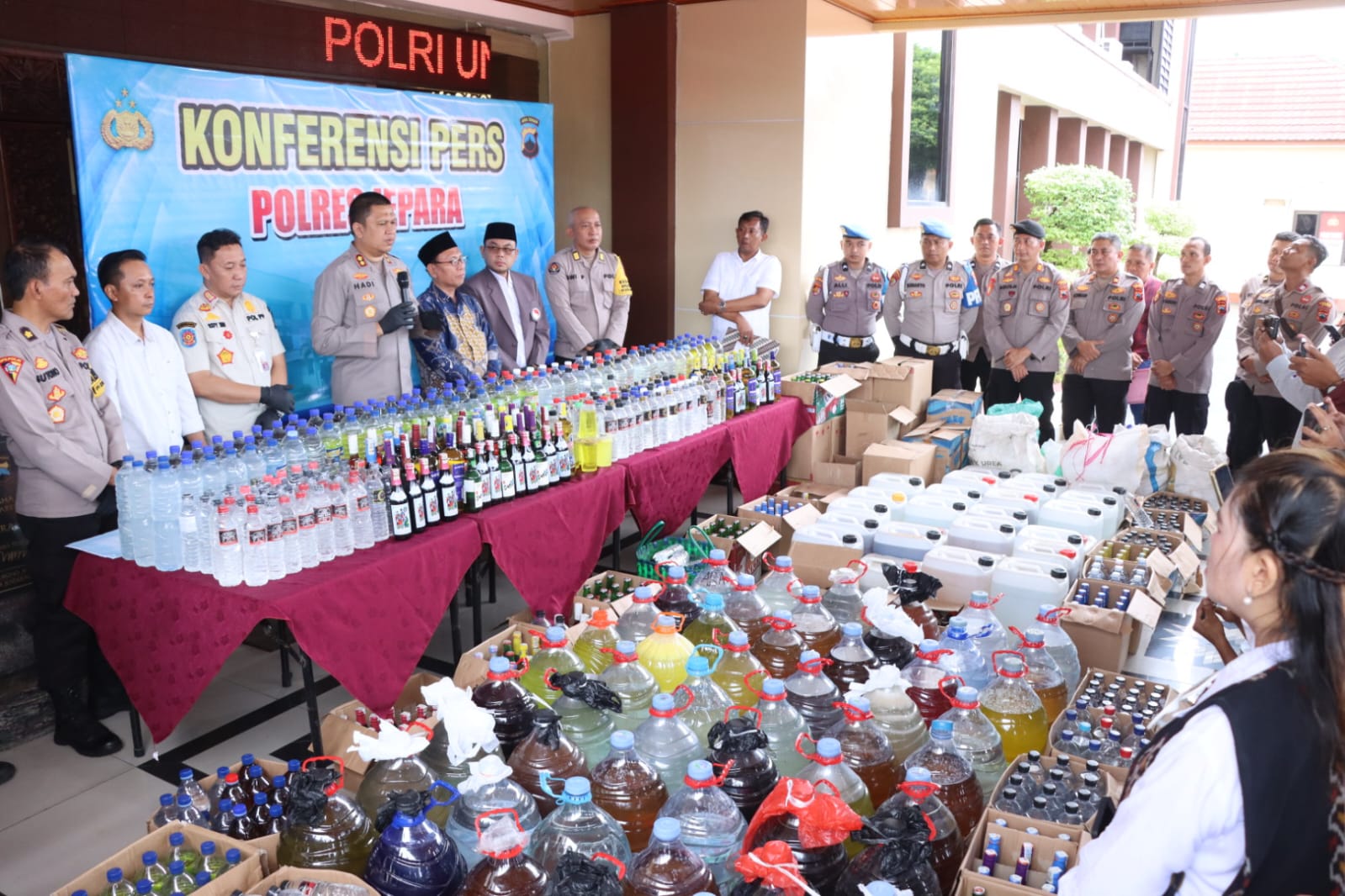 “Selama periode itu, Polres Jepara beserta Polsek jajaran berhasil mengamankan barang bukti, terutama minuman keras (miras) berbagai jenis dan merek dengan jumlah 2.707 botol dan 2.769 liter miras oplosan,” ungkap Kapolres Jepara AKBP Hadi saat menggelar konferensi pers didampingi pejabat utama, pemerintah daerah dan perwakilan tokoh agama serta tokoh masyarakat di Mapolres setempat, Jumat (13/2/2026).