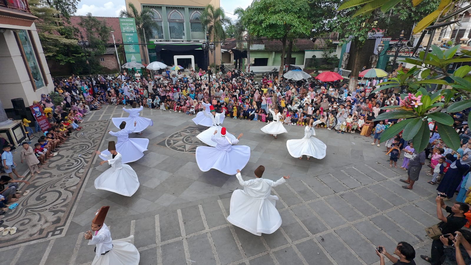 Sebanyak 30 santri lebih, mulai dari anak-anak hingga dewasa, tampil membawakan tarian dzikir sufi Whirling Dervish yang terinspirasi dari ajaran Maulana Jalaluddin Rumi.