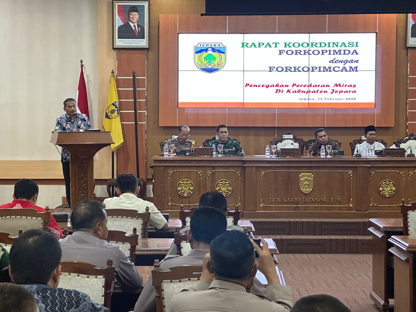 JEPARA | GISTARA. COM – Pemerintah Kabupaten Jepara menggelar rapat koordinasi (rakor) antara Forum Koordinasi Pimpinan Daerah (Forkopimda) dan Forum Koordinasi Pimpinan Kecamatan (Forkopimcam) guna mempersiapkan situasi kondusif menjelang Ramadan sekaligus mengantisipasi peredaran minuman keras (miras). Kegiatan berlangsung di Gedung Shima Setda Jepara, Jumat (13/2/2026).
