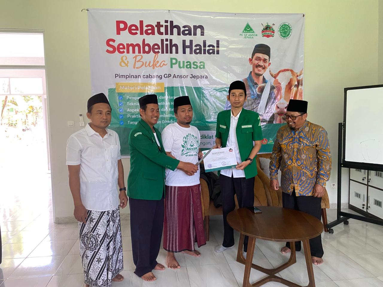 Sementara pelatihan ini di fasilitasi oleh pemateri dari MUI Jepara KH. M. Zaenal Habib (Komisi Fatwa MUI Jepara) menjelaskan mulai dasar, cara dan tujuan menjadi penyembelih yang benar. Para peserta juga ikut diberikan perangkat penyembelih berupa golok, dan sertifikat guna dijadikan bekal saat dibutuhkan dilingkungan masyarakat.