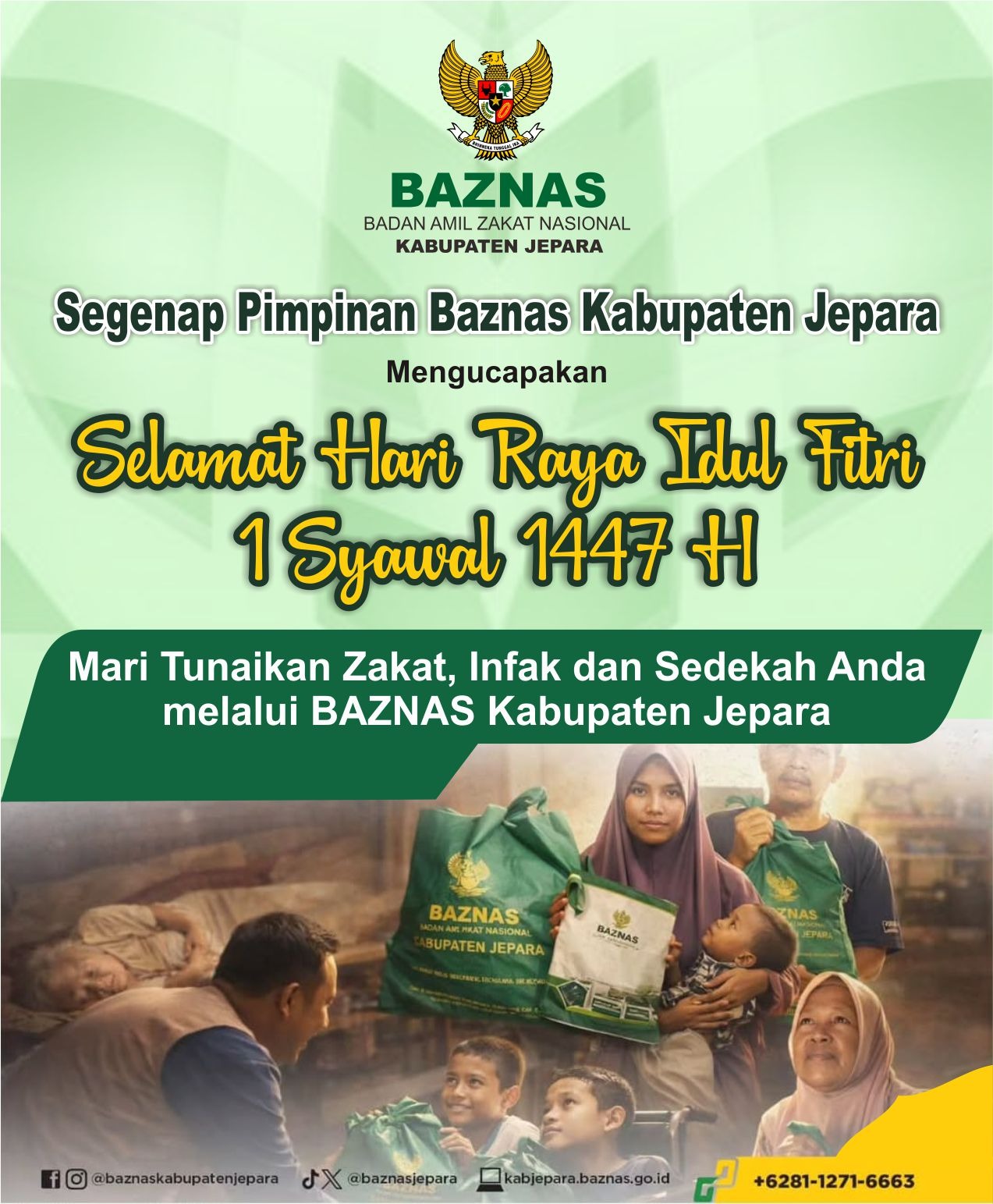 MuriaBAZNAS Kabupaten Jepara Mengucapkan Selamat Hari Raya Idul Fitri 1447 H by Redaksi 17/03/2026 Redaksi 17/03/2026 7 views 7 Baznas JeparaMohon Maaf Lahir BatinSelamat Idul Fitri 1447 H 0 FacebookTwitterPinterestEmail Redaksi Following Author previous post Berbagi Kebahagiaan, PC GP Ansor Jepara Gelar Santunan Yatama next post H. Ulil Albab, S.Psi, M.AP., Mengucapkan Selamat Hari Raya Idul Fitri 1447 H You may also like Berbagi Kebahagiaan, PC GP Ansor Jepara Gelar Santunan Yatama 17/03/2026 Di Hadapan Kiai NU dan Muhammadiyah, Bupati Jepara Komitmen Tingkatkan Gaji Guru Madrasah 17/03/2026 Tingkatkan Skill Kader, PC GP Ansor Jepara Gelar Pelatihan Sembelih Halal 16/03/2026 Catat! Ini Jadwal Libur dan Cuti Bersama Idulfitri 1447 H 16/03/2026 Pemkab Jepara Siap Bantu Mahasiswa Kesulitan Bayar UKT, Ini Syaratnya 16/03/2026 Raih Berkah Seribu Bulan, MWC NU Tahunan Gelar Nyegat Lailatul Qadar 15/03/2026