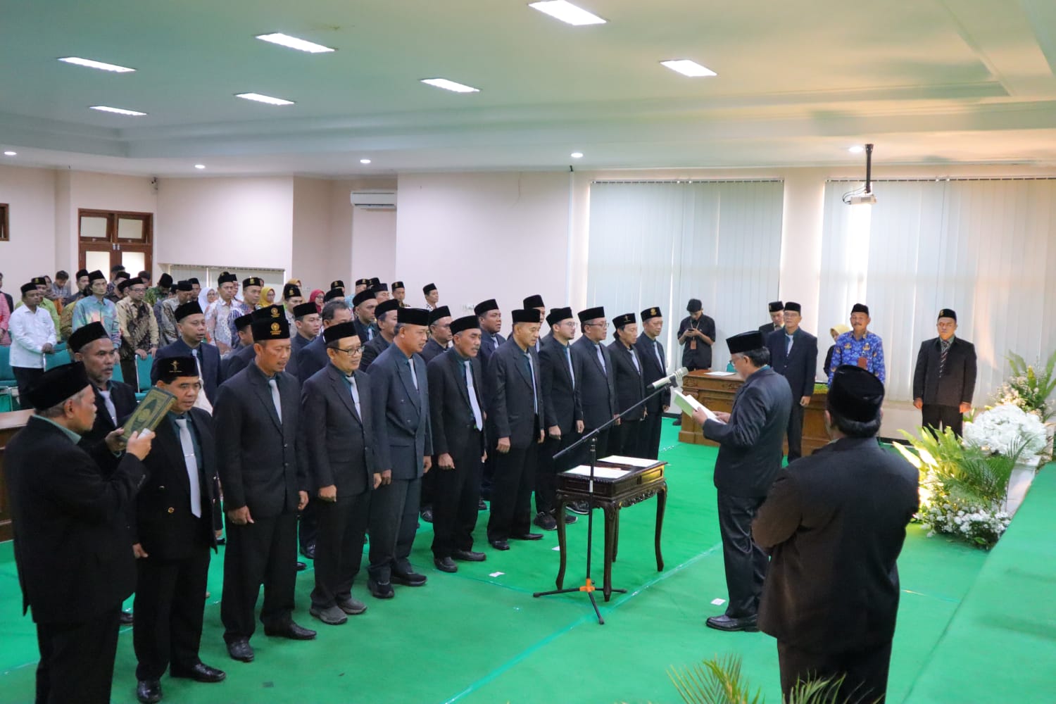 Acara diawali dengan menyanyikan lagu Indonesia Raya dan Syubbanul Wathon, dilanjutkan dengan pembacaan tahlil serta doa bersama. Selanjutnya, dibacakan surat keputusan kepengurusan baru sebelum prosesi pelantikan resmi digelar untuk masa bakti lima tahun ke depan.
