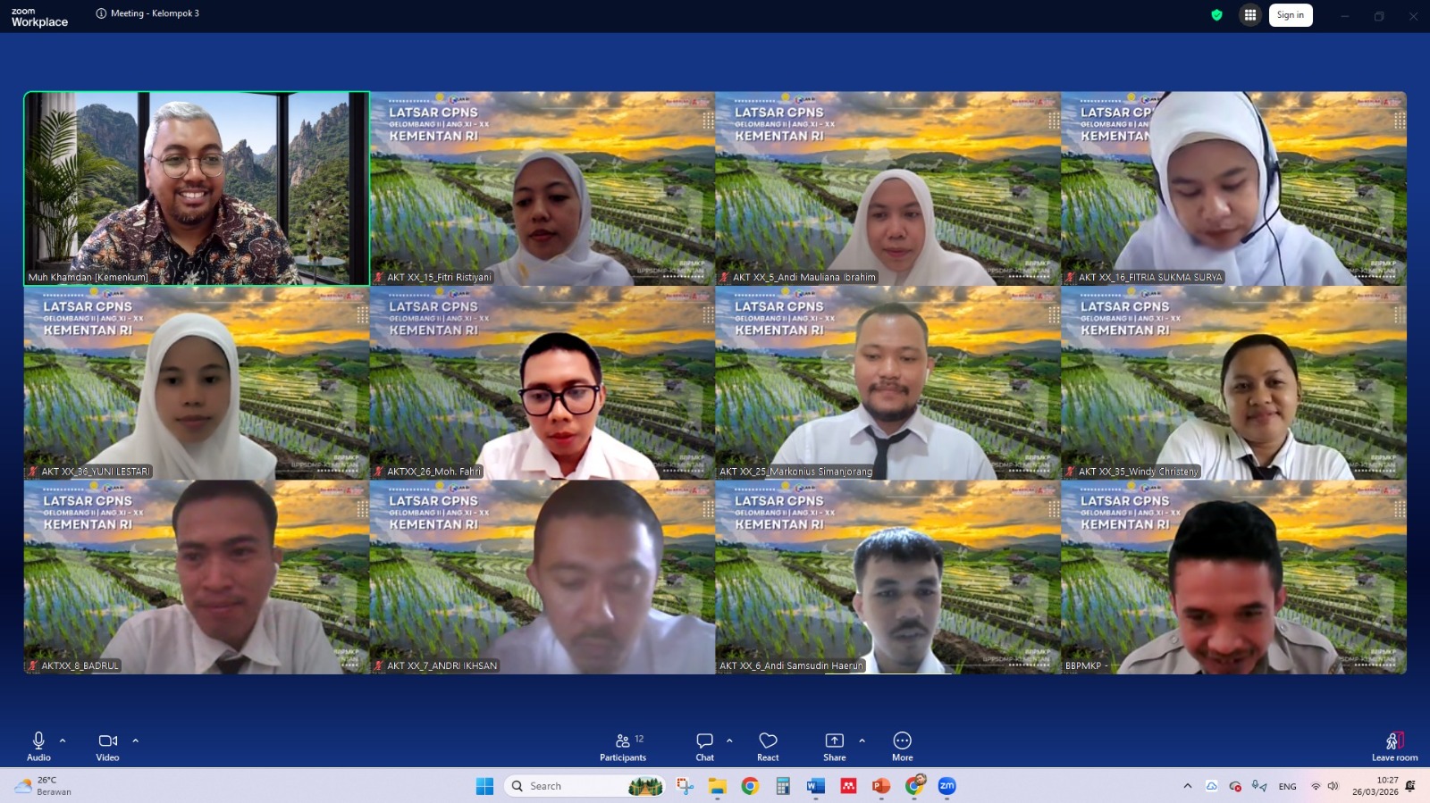 SEMARANG | GISTARA. COM – Di sebuah ruang virtual yang terhubung dari Balai Pelatihan Hukum (Bapelkum) Semarang, suasana pembelajaran terasa khidmat sekaligus reflektif, Selasa (31/3/2026). Dari balik layar, Dr. Muh Khamdan menyapa sepuluh peserta Aparatur Sipil Negara (ASN) muda dari Kementerian Pertanian. Mereka bukan sekadar mengikuti Pelatihan Dasar (Latsar), melainkan sedang ditempa untuk memahami makna bela negara dalam wajah yang lebih kontekstual, melalui ketahanan pangan dan kecakapan analisis kebijakan.