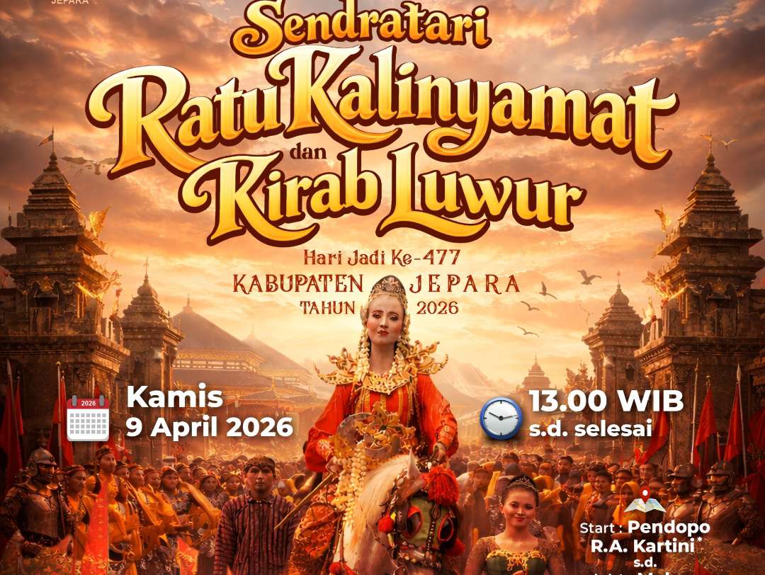 JEPARA | GISTARA. COM – Bupati dan Wakil Bupati Jepara, unsur Forkopimda, serta pemeran Ratu Kalinyamat akan berkuda dalam Kirab Buka Luwur, Kamis (9/4/2026). Kirab berlangsung dari Pendopo Kartini menuju Makam Mantingan, Kecamatan Tahunan.