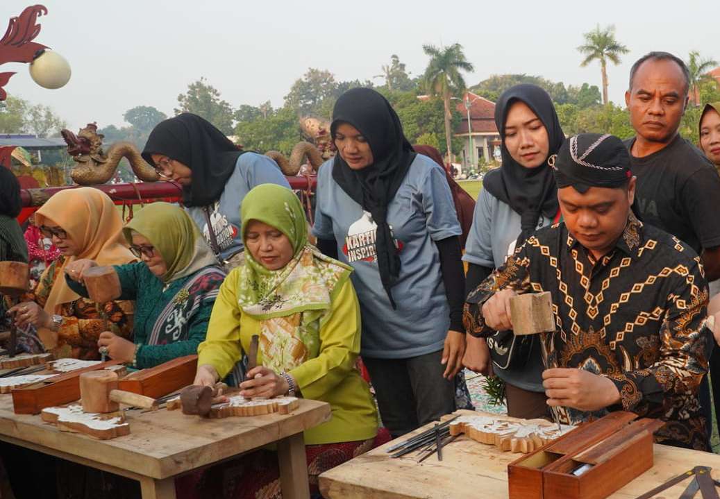 Bupati Jepara Witiarso Utomo, Wakil Ketua DPRD Jepara Arizal Wahyu Hidayat, anggota DPRD Jateng Andang Wahyu Triyanto dan lainnya ikut menjajal langsung proses kreatif mengukir.