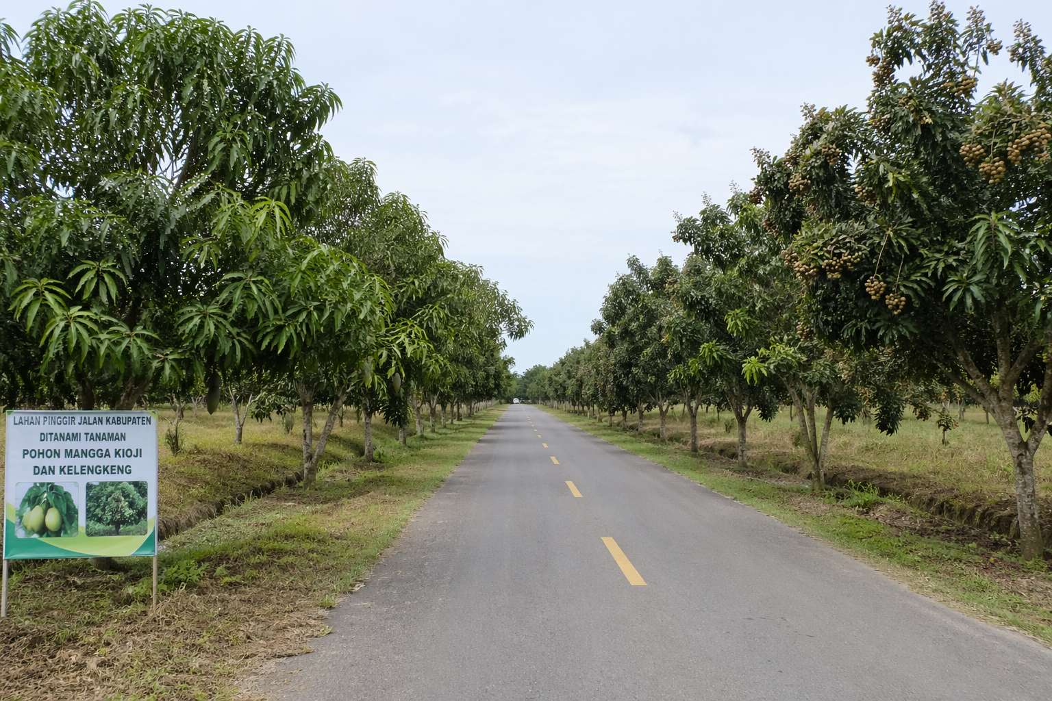 Ia menjelaskan, selama ini bahu jalan atau turus jalan kerap hanya menjadi lahan sisa yang ditumbuhi semak atau pohon pelindung biasa tanpa nilai tambah ekonomi. Melalui program ini, kondisi tersebut diubah menjadi lebih produktif.